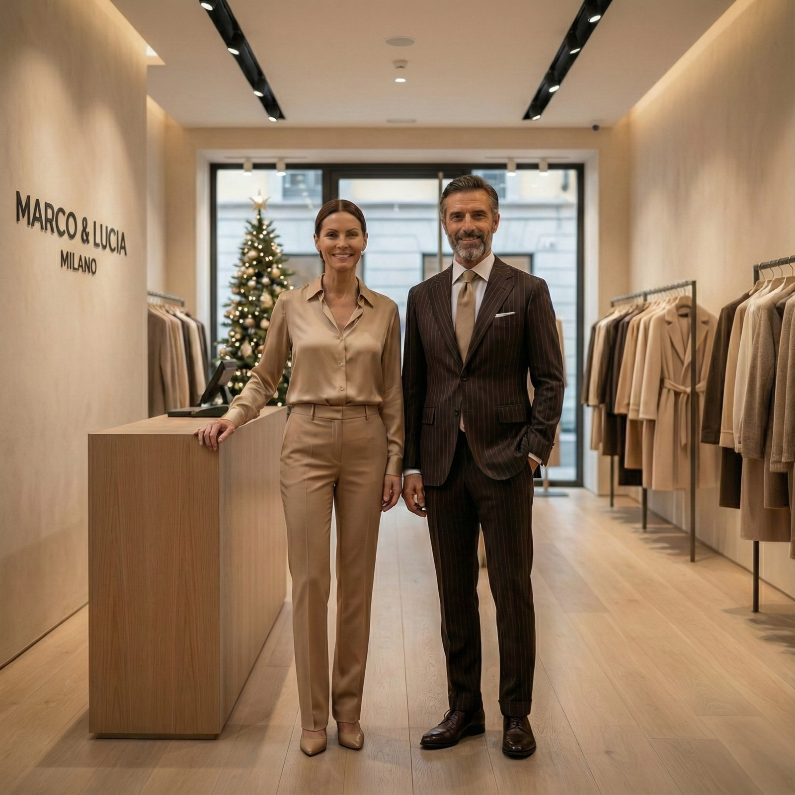 Ciao, siamo Marco e Lucia, fondatori di Marco & Lucia Milano. Da 15 anni la nostra boutique è un punto di riferimento per chi ama stile, eleganza e carattere. Ogni capo, uomo o donna, è selezionato con cura per offrire qualità, comfort e personalità a chi lo indossa.